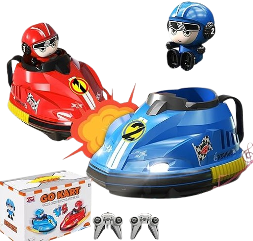 🚗 2 RC Bumper Cars – One red and one blue, each with its own remote